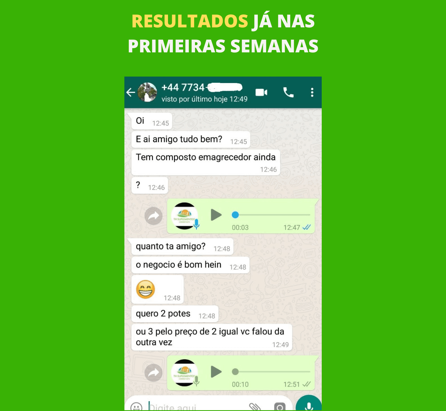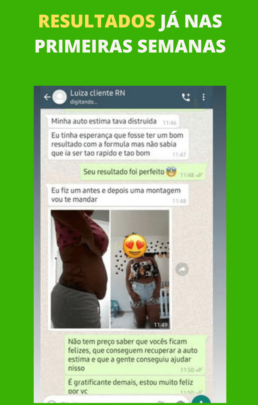 Temos inúmeros relatos como podem ver nas fotos acima cerca de 98.7% de nossos clientes usam e recomenda, temos relatos de CLIENTES QUE ELIMINARAM ATÉ 1KG POR DIA como podem ver nas fotos acima Clique aqui e terá acesso a mais referências Caso tenha alguma dúvida contate-nos através do nosso WhatsApp é só clicar no icone ao lado direito da pagina será redirecionado(a) para nossa central de atendimento.